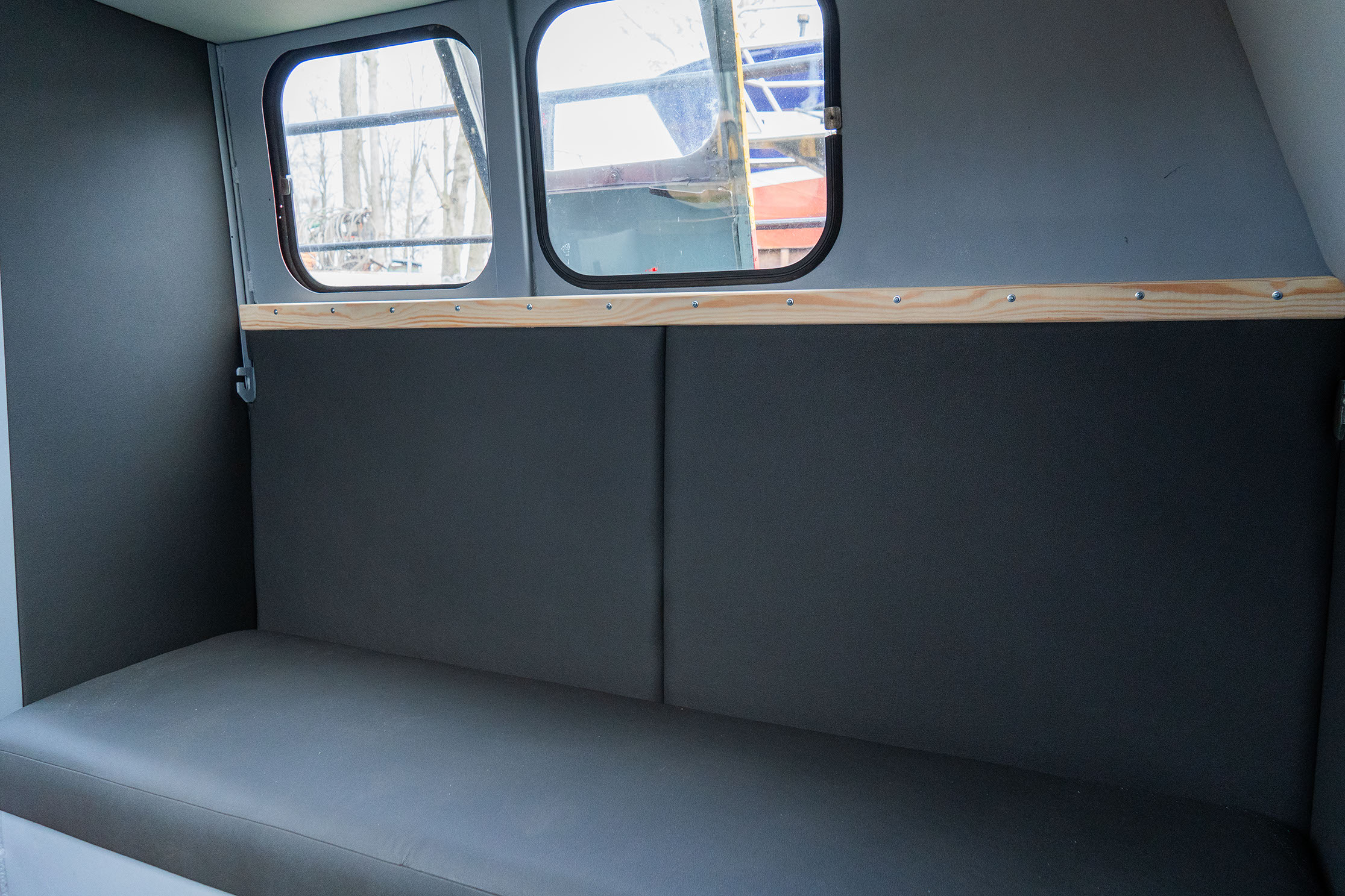 Wykonanie paneli tapicerowanych na obicie ścian i sufitów jednostki pływającej, wykonane na zlecenie jednego z armatorów żeglugi śródlądowej.
